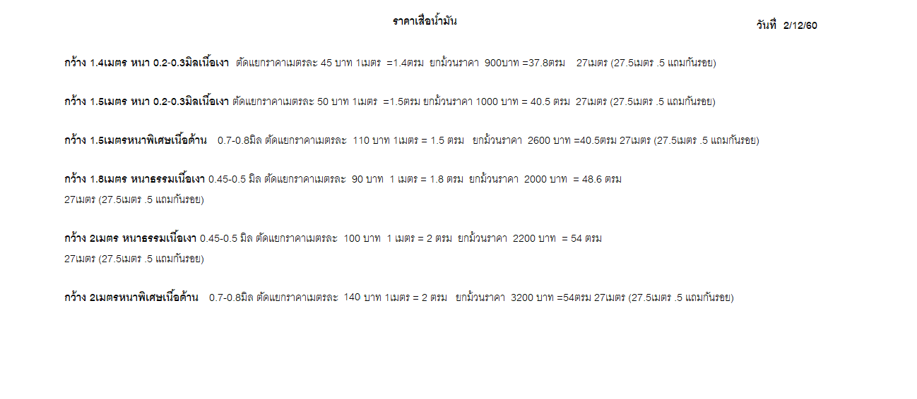 สินค้า ใน ลายเสื่อน้ำมันมาใหม่ 3/12/60 (คลิ๊กดูด้านใน) (1 ชนิด)